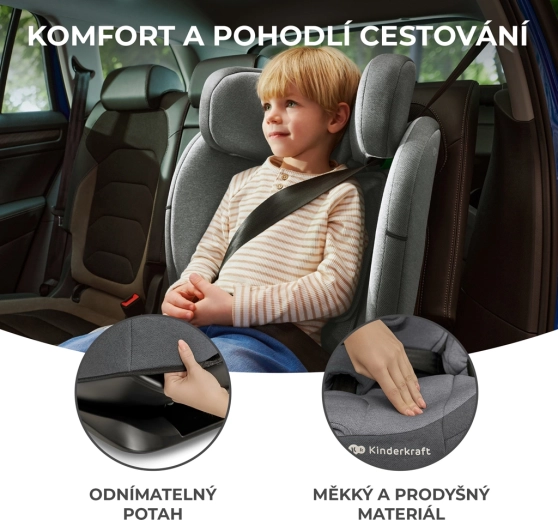 Der Autokindersitz Kinderkraft Oneto3 i-Size wächst mit Ihrem Kind von 76 bis 150 cm mit. Er erfüllt den neuesten Standard R129 i-Size und knüpft an das ausgezeichnete Modell ONETO3 (ADAC) an. Dank ISOFIX und TOP TETHER installieren Sie ihn schnell und korrekt – Montageindikatoren helfen, Fehler zu vermeiden. Größere Kinder können mit dem 3-Punkt-Gurt des Fahrzeugs gesichert werden; die Nutzung ist auch ohne ISOFIX möglich.