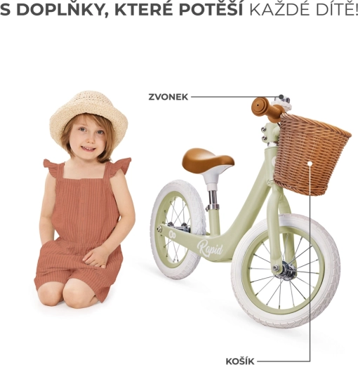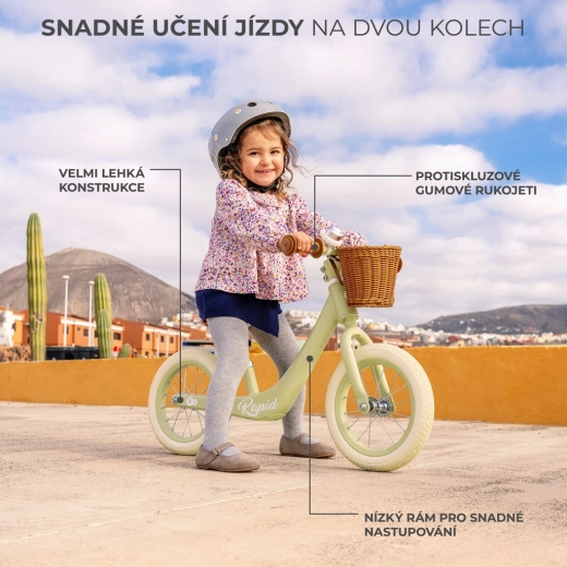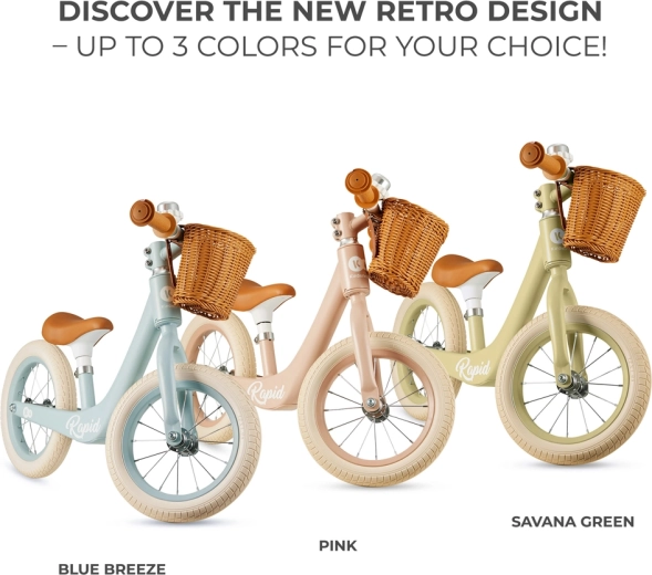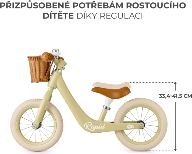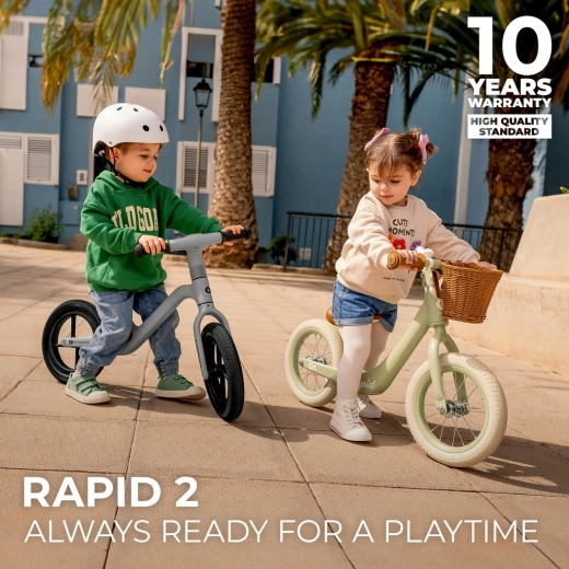 Entdecken Sie die Freude an den ersten Fahrten mit dem Laufrad KINDERKRAFT RAPID 2 Savannah Green. Der Retro-Look mit praktischem Körbchen begeistert auf den ersten Blick, während die durchdachte Konstruktion die Entwicklung von Gleichgewicht und Motorik fördert. Dank des leichten Rahmens aus Magnesiumlegierung (Magnesium) wiegt das Rad nur ca. 3,7 kg, lässt sich leicht tragen und ist außergewöhnlich widerstandsfähig.