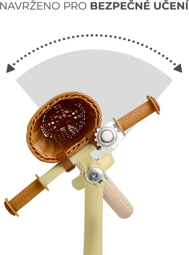 Große Gummireifen mit Kugellagern dämpfen Unebenheiten hervorragend und sorgen für eine sanfte Fahrt auf Gehwegen und Waldwegen. Der verstellbare Sattel (33,5–41,5 cm) passt sich schnell wachsenden Kindern an, und der tief liegende Rahmen erleichtert auch kleineren Fahrern das Aufsteigen. Die Begrenzung des Lenkwinkels schützt das Kind vor plötzlichem, unkontrolliertem Einschlagen, und die rutschfesten Gummigriffe gewährleisten einen sicheren Halt.