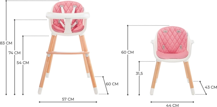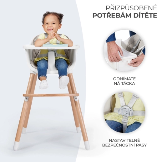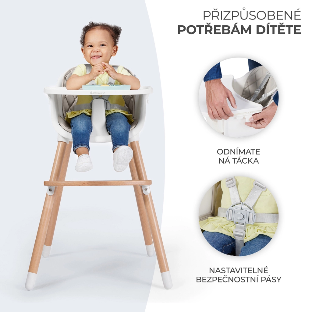 KINDERKRAFT Sienna ist ein vielseitiger Hochstuhl, der sich schnell an die Bedürfnisse Ihrer Familie anpasst. Die hohe Position ist ideal für die ersten Beikostmahlzeiten und gemeinsames Essen, die niedrige Variante eignet sich hervorragend für ältere Kinder bei Aktivitäten und beim Essen. Dank robuster Konstruktion, einfacher Handhabung und leichter Pflege ist dies eine Lösung für viele Jahre.
