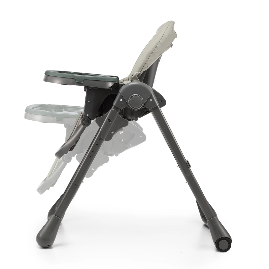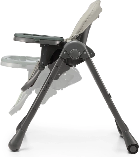 Den Stuhl passen Sie dank 7 Höhestufen an jeden Tisch an, die Rückenlehne bietet 4 Positionen einschließlich Relax-Position, die Fußstütze 3 Positionen. Nach dem Essen klappen Sie ihn im Handumdrehen nahezu flach zusammen, hängen das Tablett an die Hinterbeine und verschieben ihn dank der Rollen bequem. Das zeitlose graue Design passt zu modernen Interieurs und die Materialien lassen sich leicht mit einem feuchten Tuch reinigen.