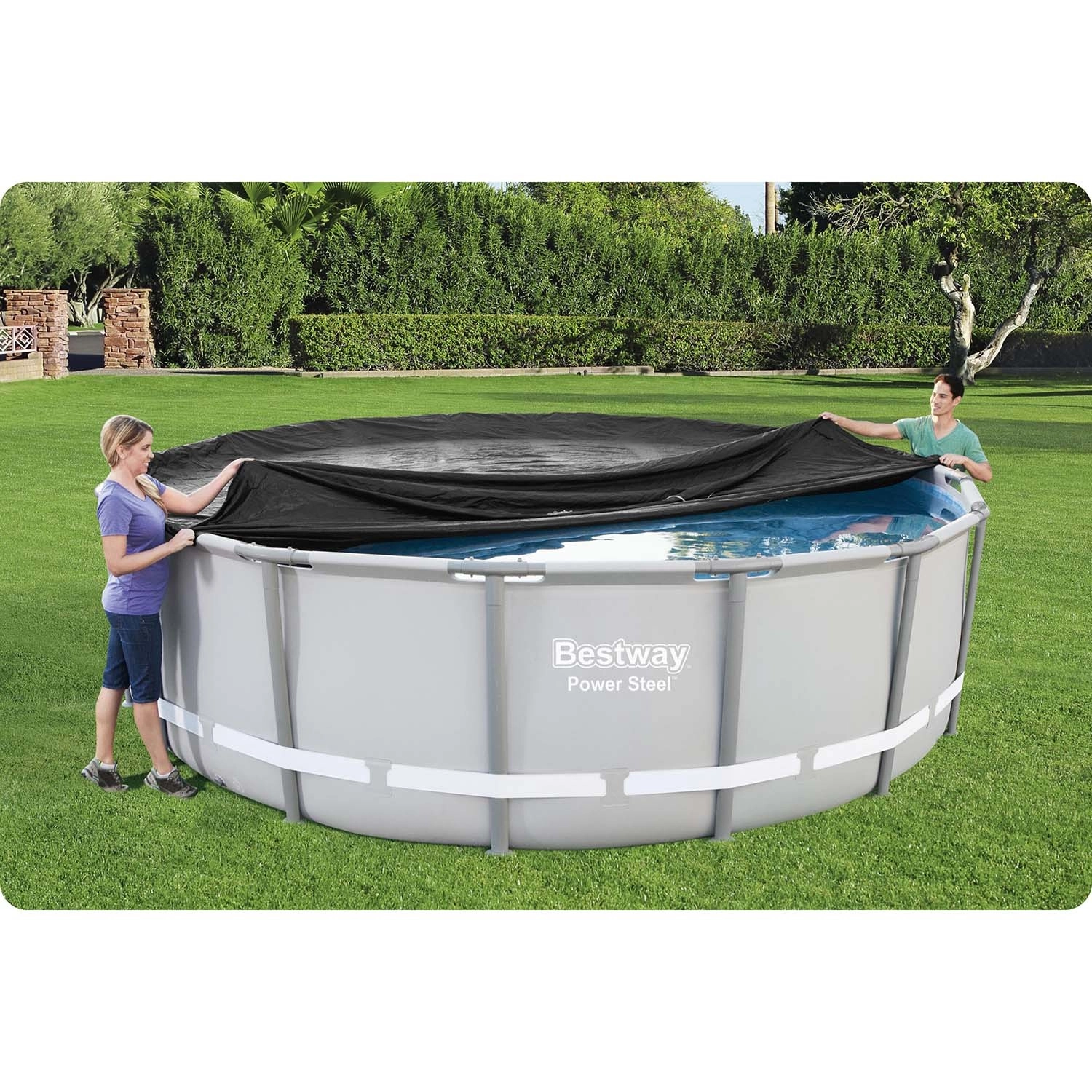 Eine zuverlässige Poolabdeckung ist ein unverzichtbares Zubehör für alle, die ihr Wasser länger sauber halten und die Pflegekosten senken möchten. Diese Abdeckung für runde Frame-Pools mit 488 cm Durchmesser besteht aus robustem PE, ist witterungs- und UV-beständig und dank der Ablauföffnungen sammelt sich kein Regenwasser auf der Oberfläche.