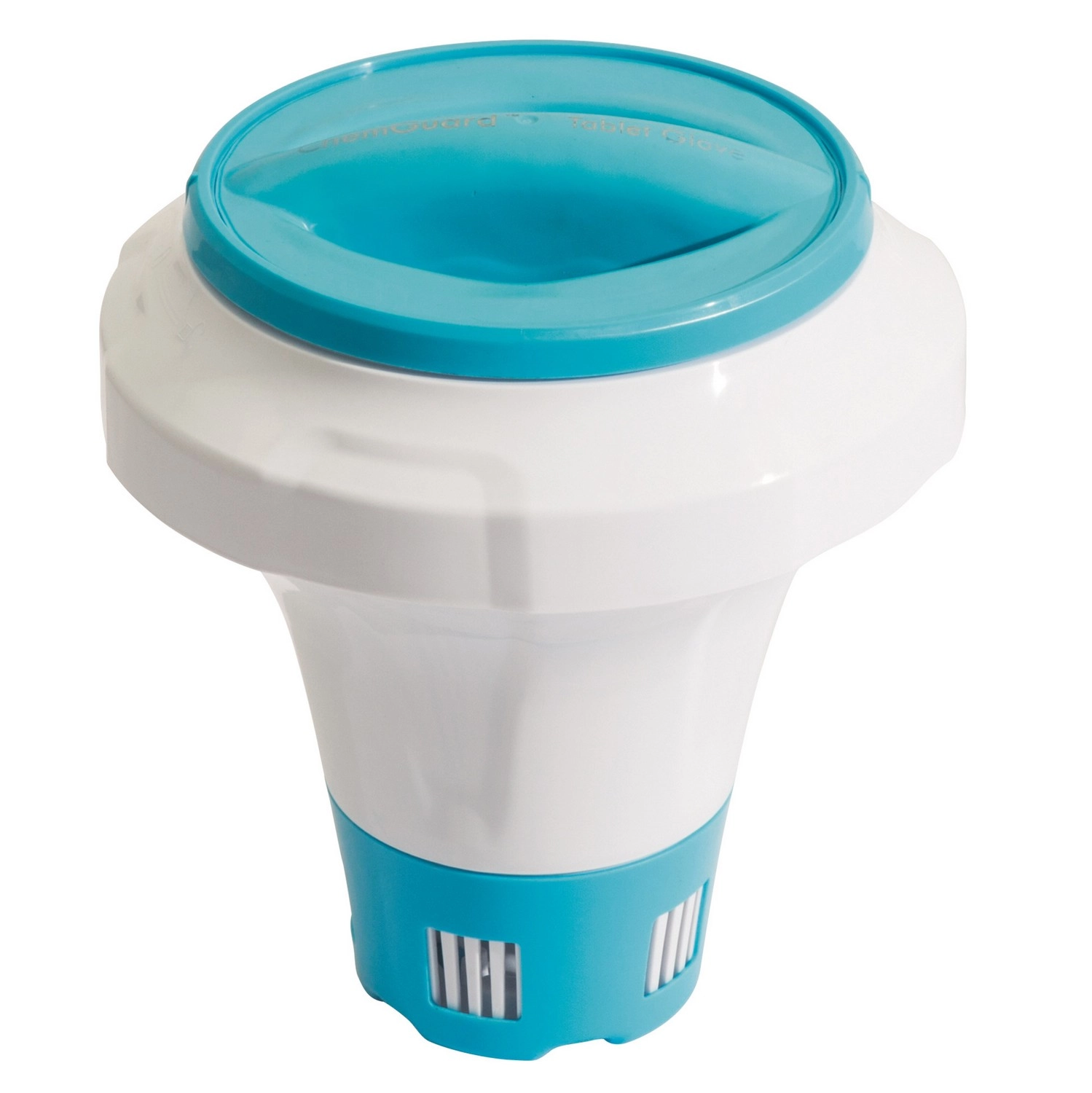 Der verstellbare Dosier-Ring ermöglicht eine präzise Einstellung des Durchflusses und damit der Auflösegeschwindigkeit der Tabletten. Der Gummigriff im Deckel gewährleistet ein komfortables und sicheres Einlegen der Tabletten ohne direkten Kontakt mit Chemikalien. Das zweistufige Sicherheits-Schloss des Deckels hilft, unbeabsichtigtes Öffnen – etwa durch Kinder – zu verhindern.
