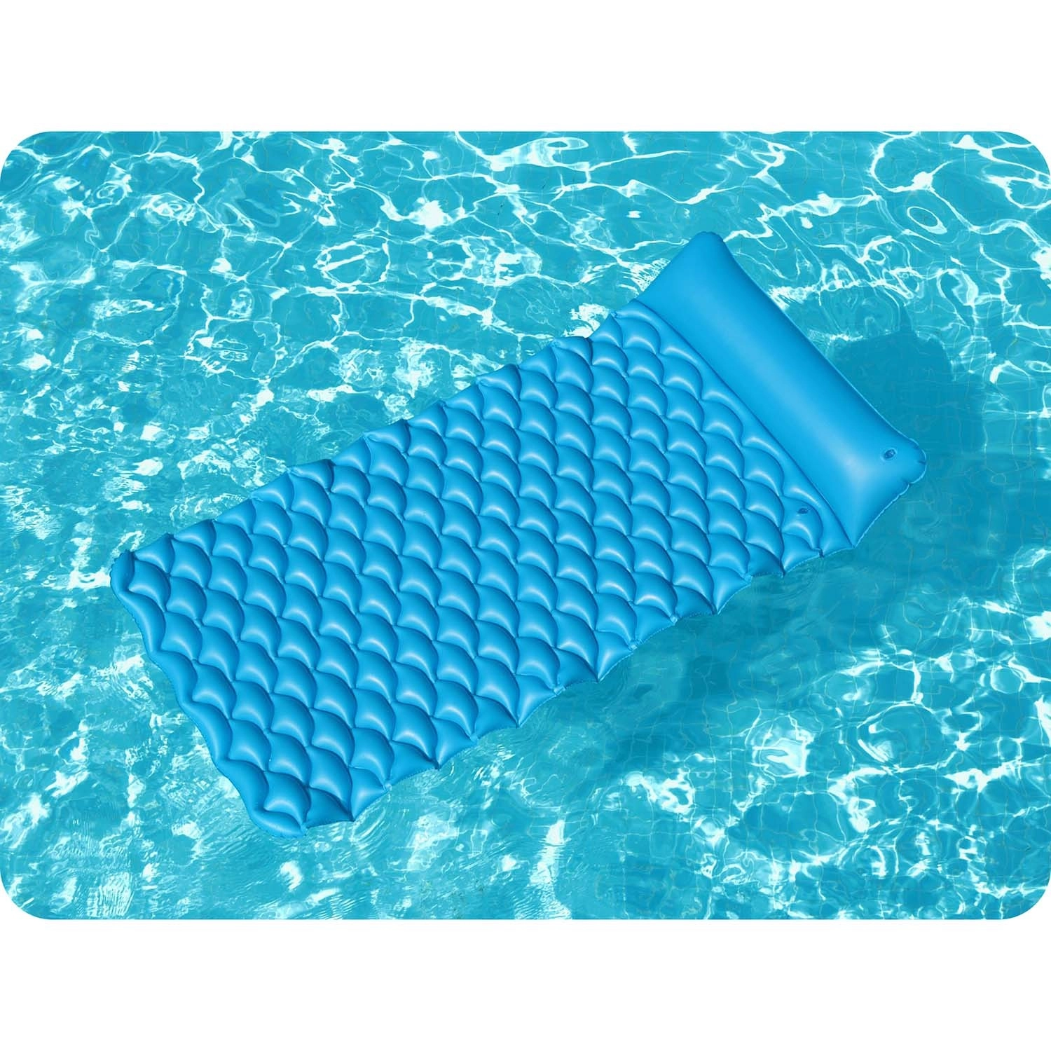 Die große und stabile Luftmatratze ist die perfekte Wahl für ungestörte Erholung auf dem Wasser. Dank des integrierten Kissens stützen Sie Ihren Kopf bequem ab, während robustes PVC für Langlebigkeit und einfache Pflege sorgt. Die türkisfarbene Optik verleiht Ihren Sommerabenteuern einen frischen Stil.
