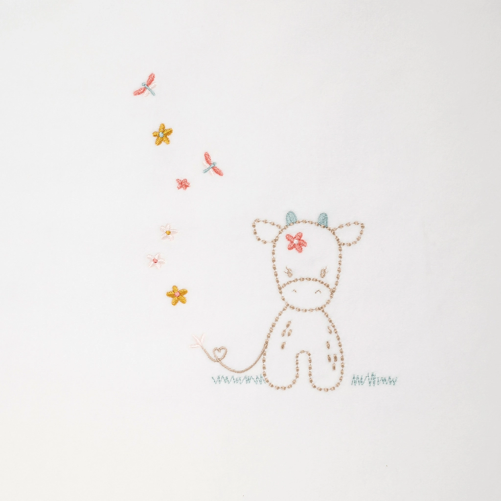 Die großzügigen Maße von 135 × 100 cm passen ins Kinderbett, in den Kinderwagen und sind ideal für unterwegs. Die Decke ist leicht und geschmeidig und lässt sich gut zusammenlegen, sodass sie überallhin mitgenommen werden kann. Die einfache Pflege durch Waschen bei 30 °C erleichtert den Alltag.