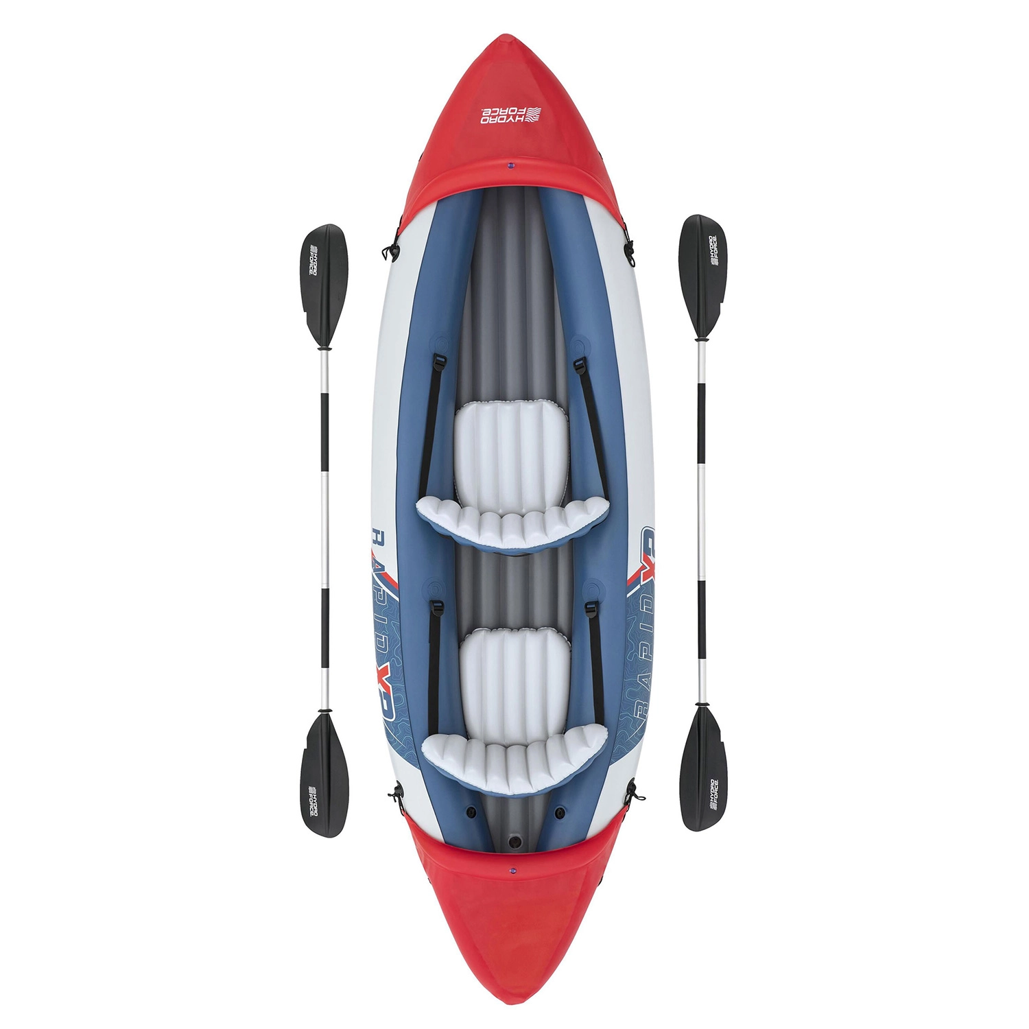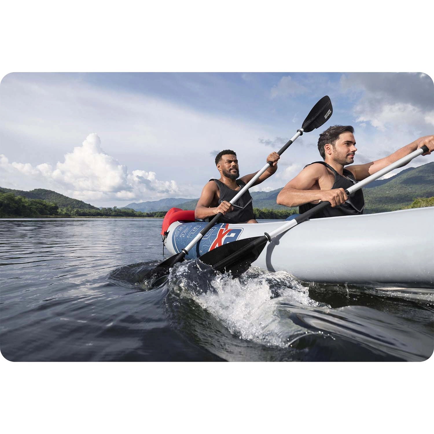 Das aufblasbare Kajak HYDRO-FORCE Lite Rapid X2 ist ideal für gemütliches Paddeln auf Seen und ruhigen Flüssen. Dank verstärktem Inflata‑Shield™ PVC ist das Kajak widerstandsfähig, dehnt sich weniger und bietet sicheren Halt sowie Stabilität. Der aufblasbare, weiche Boden verleiht zusätzliche Steifigkeit und erhöht den Sitzkomfort.