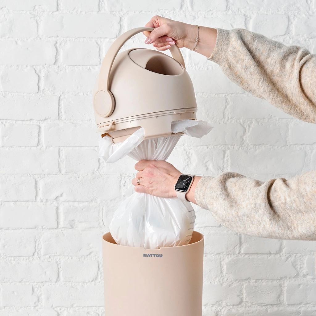 Der praktische Windeleimer NATTOU Dropy White ist für maximalen Elternkomfort und eine saubere Umgebung im Kinderzimmer konzipiert. Der spezielle Anti-Geruch-Verschluss verhindert Geruchsaustritt, während der durchdachte Mechanismus das einfache Einwerfen der Windeln mit nur einer Hand ermöglicht. Einfach den Griff anheben, die Windel einlegen und absenken – die Windel fällt sicher in die innere Kammer.