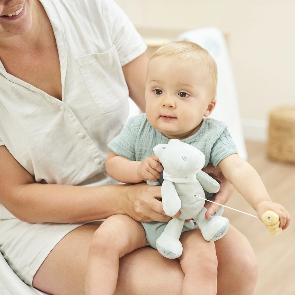 Das Musik-Plüschkrokodil NATTOU Romeo ist ein sanfter Begleiter fürs Bettchen und für unterwegs. Die kuschelweichen Materialien und sorgfältigen Nähte sorgen für sicheres Schmusen, während die zarte Melodie La‑Le‑Lu vor dem Schlafengehen Ruhe und Geborgenheit vermittelt. Durch die durchdachten Greifelemente liegt das Spielzeug auch in kleinen Händchen gut.