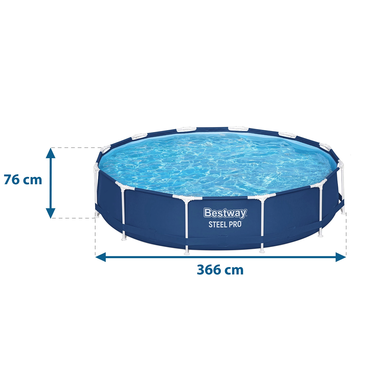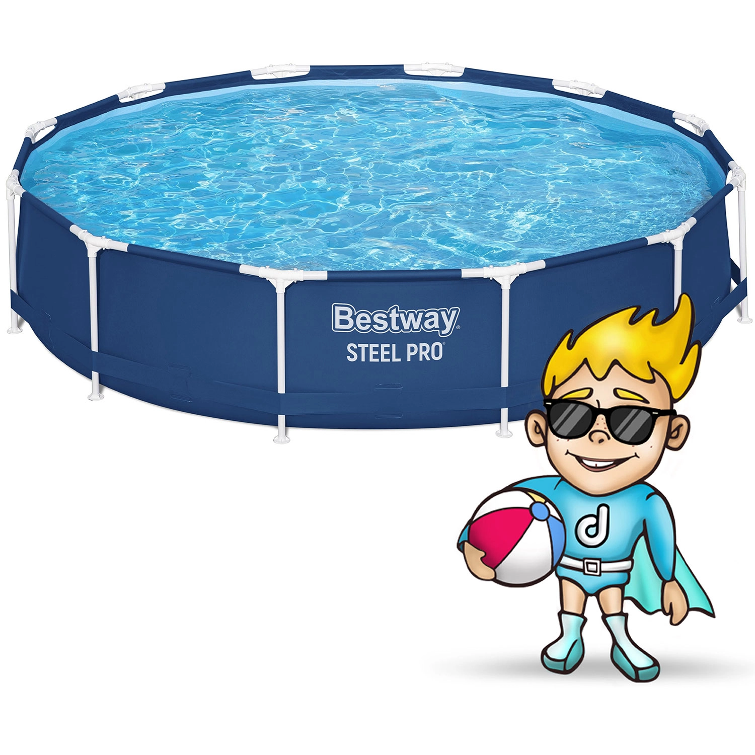 Der Bestway Steel Pro 366 × 76 cm ist ein zuverlässiger Aufstellpool für die ganze Familie. Der stabile Stahlrahmen, die widerstandsfähige 3‑schichtige Folie mit Nylonverstärkung und das durchdachte Zubehör im 16in1-Set ermöglichen Ihnen einen nahezu sofortigen Start. Dank der einfachen, werkzeuglosen Montage ist der Pool in 3 Schritten einsatzbereit – Plane auslegen, Gestell montieren, Wasser einlassen.