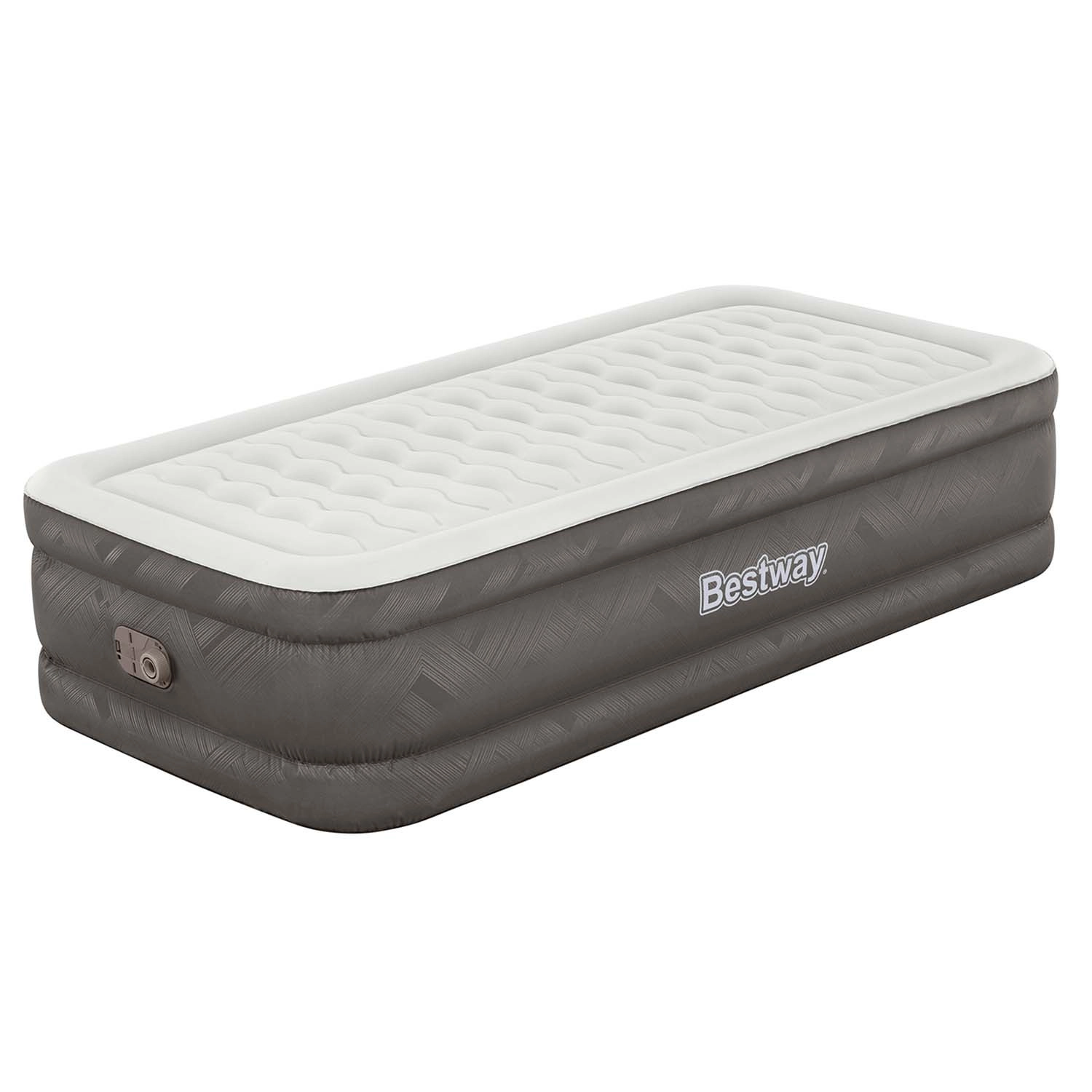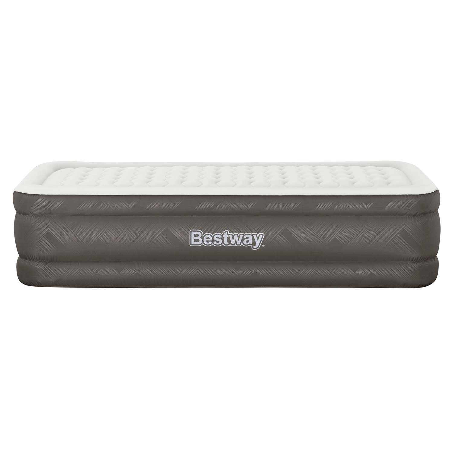 Genießen Sie den Komfort eines vollwertigen Betts, egal wo Sie sind. Diese BESTWAY Einzel-Luftmatratze mit den Maßen 191 × 97 × 46 cm bietet eine angenehme Höhe, eine stabile Konstruktion und dank der integrierten elektrischen Pumpe für 220–240 V ein schnelles Aufpumpen. Die Oberfläche ist weich und angenehm, während die inneren Verstrebungen die Matratze die ganze Nacht über fest und formstabil halten.