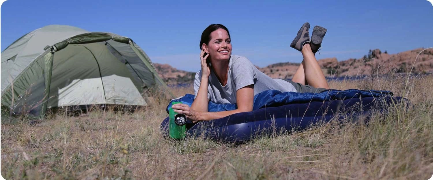 Die manuelle Kolbenpumpe im Lieferumfang ermöglicht einfaches und schnelles Aufpumpen überall – zu Hause und unterwegs.
