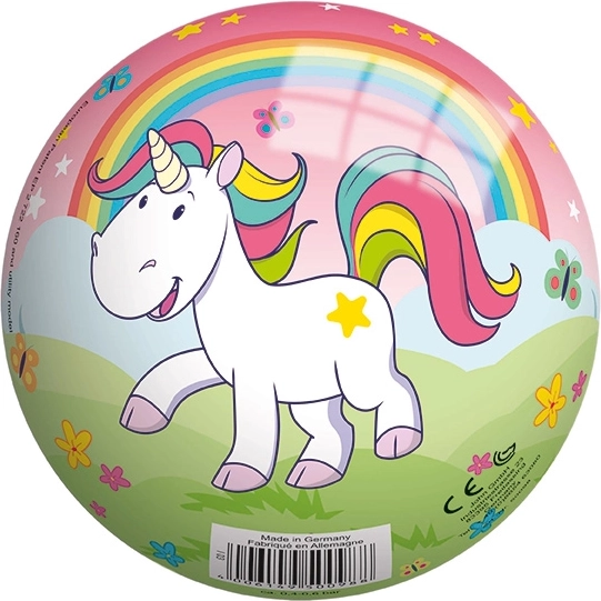 Hochwertiger PVC-Ball mit Einhornmotiv und einem Durchmesser von 130 mm.