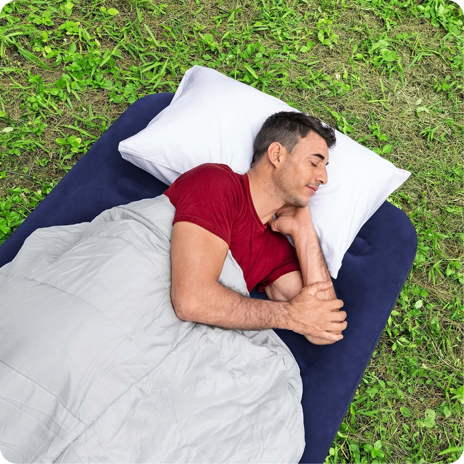 Die obere beflockte (Velours-)Oberfläche ist sanft, hautangenehm und verbessert den Halt des Spannbetttuchs. Die praktische Hebelpumpe im Lieferumfang ermöglicht müheloses Aufpumpen überall in nur wenigen Minuten. Die Matratze eignet sich für Innen- und Außeneinsatz – vom Wohnzimmer bis hin zum Campingplatz.