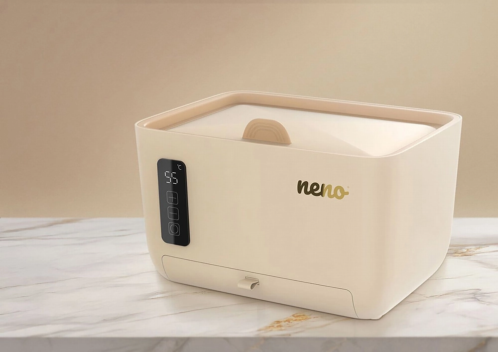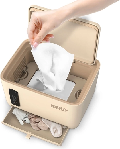 Neno Calme ist ein moderner Wärmer und eine Box für Tücher, die den Komfort bei der Babypflege erhöht. Dank drei Heizstufen (45/50/55 °C) und der beidseitigen Erwärmung von oben und unten erhalten die Tücher eine gleichmäßige, angenehme Temperatur ohne Überhitzungs- oder Austrocknungsrisiko. Der magnetische Deckel mit Dichtung spart Energie und hilft, die Feuchtigkeit im Inneren zu bewahren.