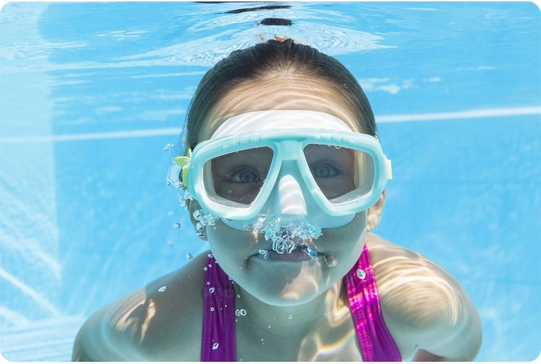Die türkise Schwimm- und Schnorchelmaske von Bestway ist für klare Sicht und Komfort bei jedem Zug konzipiert. Polycarbonat-Gläser mit UV-Schutz schützen die Augen, während die weiche Auflage sich der Gesichtsform anpasst und Wassereintritt minimiert. Dank des verstellbaren Silikonbands sitzt die Maske auch bei längeren Schwimmeinheiten fest und bequem.