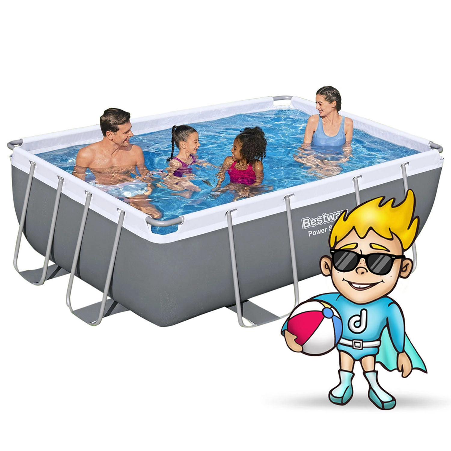 Genießen Sie den Sommer in vollen Zügen mit dem rechteckigen BESTWAY Power Steel Pool mit den Maßen 282 × 196 × 84 cm. Ein stabiler Stahlrahmen, eine verstärkte 3-lagige PVC-Folie mit Nylongewebe sowie ein mosaikbedrucktes Innenfutter garantieren Festigkeit, Widerstandsfähigkeit und eine attraktive Optik. Bei der empfohlenen 90%igen Füllung fasst der Pool bis zu 3.662 l Wasser – ideal für die ganze Familie.