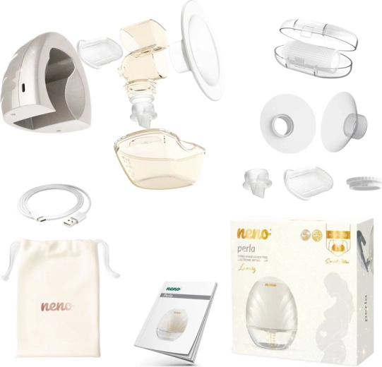 Im Lieferumfang enthalten sind Brustschild-Reduzierungen 22 mm und 19 mm für eine perfekte Anpassung und maximalen Komfort. Die praktische 120-ml-Flasche mit Deckel sorgt für eine sichere Aufbewahrung der abgepumpten Milch. Dank automatischer Abschaltung nach 30 Minuten, Aufladen über USB-C und leisem Betrieb ist Neno Perla der ideale Begleiter zu Hause und unterwegs.
