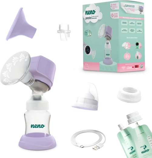 Neno Presto ist eine smarte, dreiphasige elektrische Milchpumpe, entwickelt für komfortables, effizientes und diskretes Abpumpen zu Hause und unterwegs. Die Modi Stimulation, Tiefabpumpen und die innovative Mischphase ahmen den natürlichen Saugrhythmus des Babys realistisch nach und helfen, den Milchfluss zu starten, die Brust gründlich zu entleeren und die Laktation zu fördern, auch nach einem Kaiserschnitt.