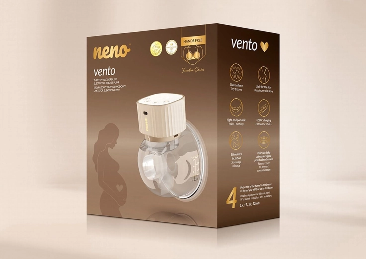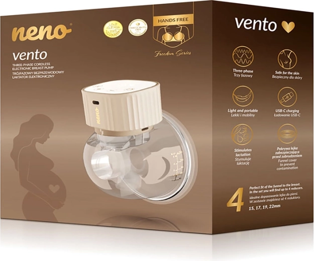 Neno Vento ist eine moderne elektrische, tragbare Milchpumpe, entwickelt für Bewegungsfreiheit und Komfort. Sie sitzt direkt im BH, funktioniert komplett kabellos und ermöglicht dank ihres leisen Betriebs diskretes Abpumpen zu jeder Tages- und Nachtzeit. Die dreiphasige Saugtechnologie – Stimulation, tiefes Abpumpen und Kombinationsmodus – imitiert das natürliche Stillen und hilft, die Laktation effektiv anzuregen und aufrechtzuerhalten.