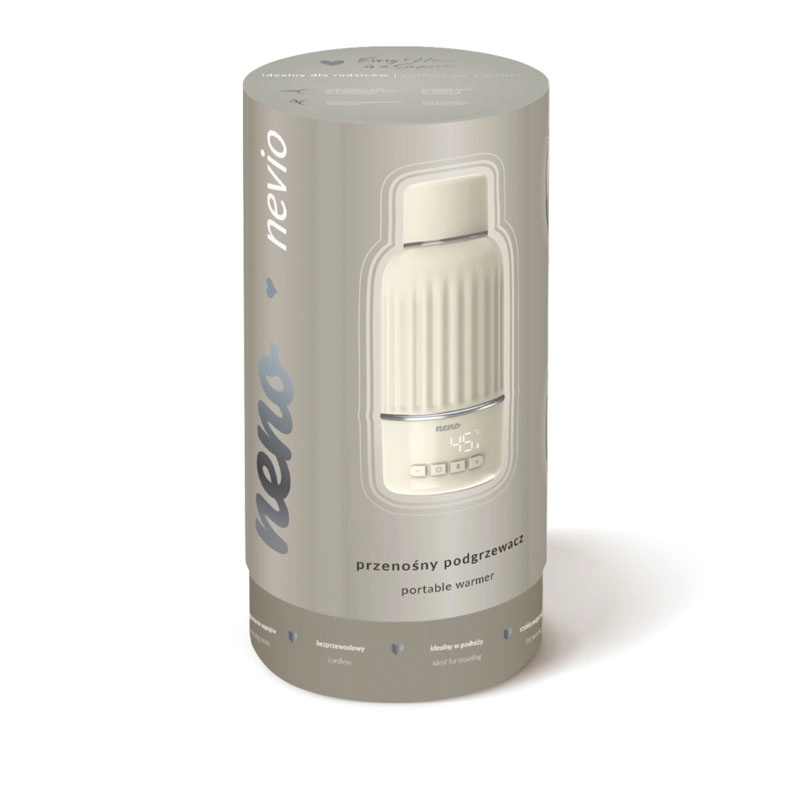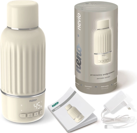 Wir präsentieren Neno Nevio – einen kompakten und tragbaren Flaschenwärmer, der schnelles Erwärmen und eine präzise Temperaturregelung von 35–55 °C mit einer Genauigkeit von 1 °C gewährleistet. Dank der Kapazität von 500 ml, dem ergonomischen Ausguss und der doppelten Abdichtung ist er ideal für zu Hause und unterwegs. Ein praktischer Deckel, der auch als Becher dient, sowie das schnelle Aufladen machen den Nevio zu einem zuverlässigen Helfer für Milch und andere Getränke.