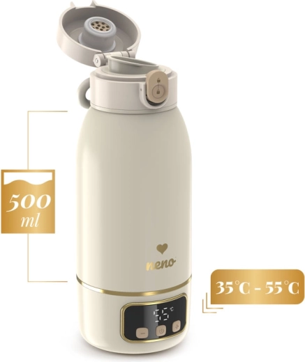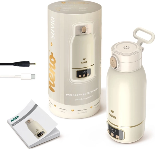 Neno Savia ist ein moderner, kabelloser Erwärmer, der das Füttern jederzeit und überall erleichtert. In nur 3 Minuten erwärmt er 150 ml Wasser auf etwa 40 °C und hält die eingestellte Temperatur zuverlässig im Bereich von 35–55 °C. Dank robuster Konstruktion, dicht schließendem Deckel und einer Sperre gegen unbeabsichtigtes Einschalten eignet er sich für Reisen, das Auto und den täglichen Spaziergang.
