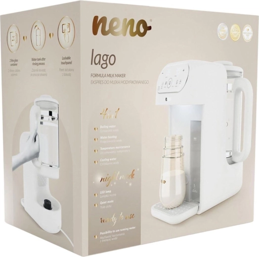 Neno Lago ist ein zuverlässiger Helfer für Eltern, die Säuglingsmilch schnell, sicher und stressfrei zubereiten möchten. Er dosiert das Wasser automatisch in der gewünschten Menge und hält es auf idealer Temperatur, sodass Sie das Fläschchen in wenigen Augenblicken vorbereiten – besonders nachts ist das großartig.