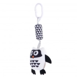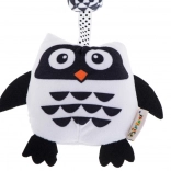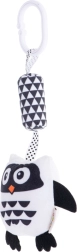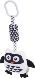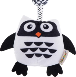 Das hängende Spielzeug in Form einer Eule ist aus weichen und angenehmen Materialien gefertigt, die auf die Bedürfnisse der kleinsten Kinder abgestimmt sind. Der Clip gewährleistet eine einfache Befestigung am Kinderwagen, Bettchen oder Tragegerät. Dank der unterschiedlichen Oberflächentexturen stimuliert das Spielzeug den Tastsinn der Kinder. Die Rassel und raschelnde Elemente stimulieren das Gehör, während der Einsatz von kontrastreichen Farben die visuellen Sinne fördert. Das schwarz-weiße Design ist die beste Wahl für Babys, die noch keinen vollständig entwickelten Sehsinn haben.
