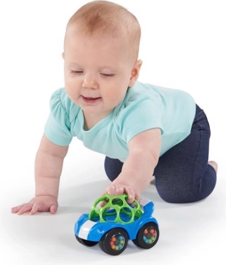 Das blaue OBALL Rattle & Roll Rassel-Auto weckt Neugier und fördert die Sinne. Dank des flexiblen OBALL-Gitters lässt es sich leicht greifen, schütteln und in Fahrt bringen. Die transparenten Räder mit großzügigen Kammern verbergen bunte Kügelchen, die sich beim Bewegen mit einem fröhlichen Klang melden – das motiviert zum Krabbeln, Klettern und zu den ersten Schritten.