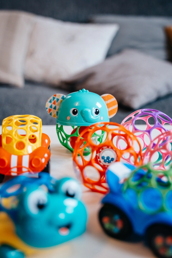 Sichere Materialien ohne BPA, PVC, Latex und Phthalate sind sanft zum empfindlichen Kinderzahnfleisch, sodass das Spielzeug auch als Beißring dient. Glatte, abgerundete Formen, geringes Gewicht und die kompakten Maße 11 × 11 × 9 cm liegen perfekt in Kinderhänden und passen auch in den Kinderwagen. Pflegeleicht – spülmaschinengeeignet und sterilisierbar (bis 60 °C).