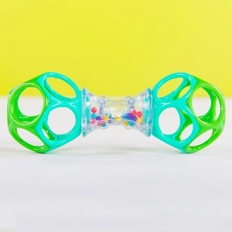 Die ikonische OBALL-Hantelrassel kombiniert einfaches Greifen, sanfte akustische Reize und sicheres Kauen in einem. Die offene Gitterstruktur an den Enden hilft Kindern, den Griff zu entwickeln, während der transparente Mittelteil mit bunten Kügelchen zu Bewegung und Entdeckung anregt. Das Spielzeug ist extrem robust, dabei leicht und sanft zum Zahnfleisch.