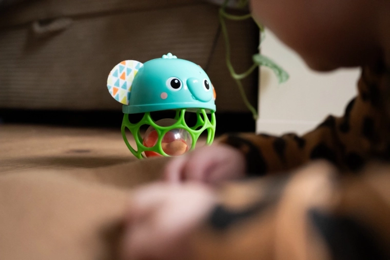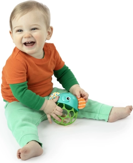 Giggle & Glow ist ein leichtes und robustes Spielzeug, das für kleinste Händchen entwickelt wurde. Die offene OBALL-Gitterkugel mit vielen Öffnungen erleichtert das Greifen und Schütteln, während im „Bauch“ des Elefanten eine Kugel mit Erdnuss für akustische Stimulation rasselt. Leuchtende Bäckchen und Kichern motivieren das Kind zum weiteren Entdecken und fördern spielerisch die Sinne.
