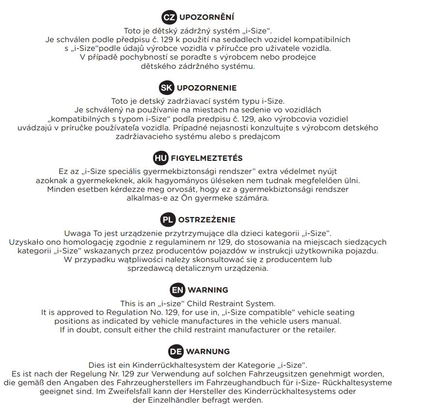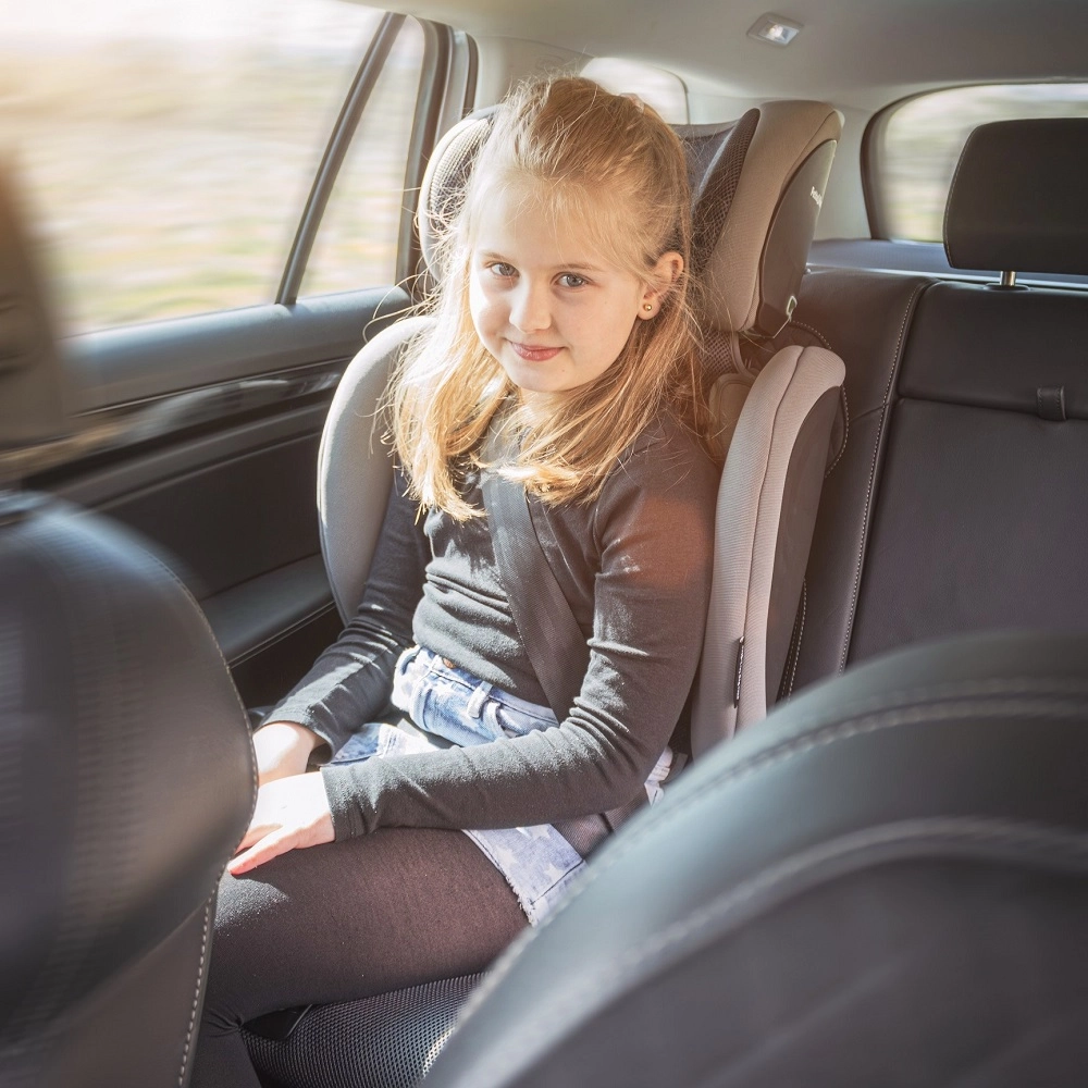 Die Konstruktion mit Seitenaufprallschutz und korrekter Gurtführung erfüllt die moderne i-Size-Norm für maximalen Schutz von Kopf und Oberkörper von 100 bis 150 cm.