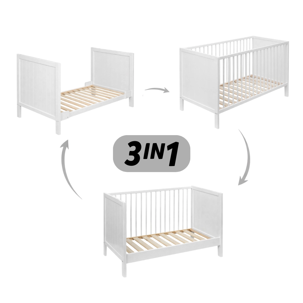 Das PETITE&MARS Mila 3‑in‑1-Bett ist eine durchdachte Lösung für jedes Kinderzimmer. Klare, gerade Linien und hochwertiges Buchenholz verbinden sich mit praktischen Funktionen für den Alltag. Eine gesundheitlich unbedenkliche Oberfläche, feste, nicht herausnehmbare Sprossen und drei Höhenpositionen des Lattenrosts sorgen für maximalen Komfort und Sicherheit.