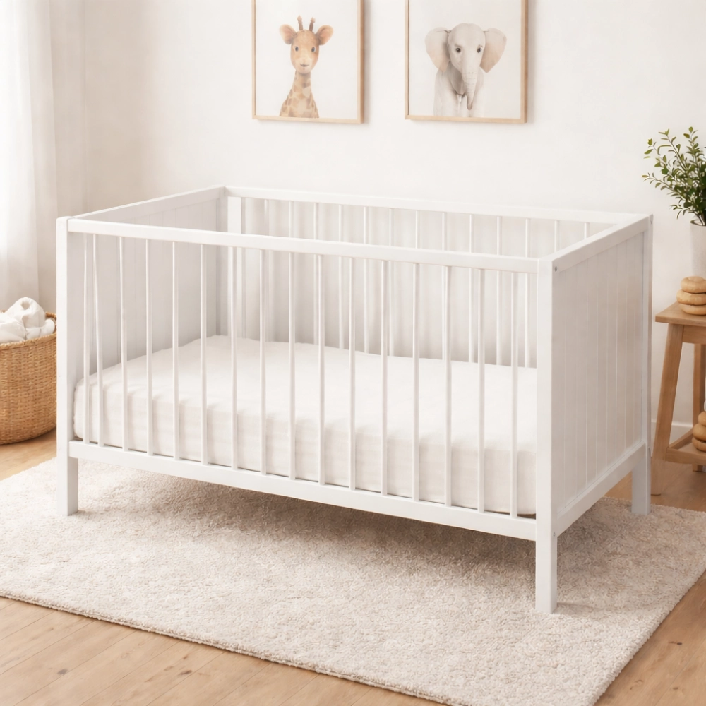 Dank des Innenmaßes von 120 × 60 cm bietet es viel Platz für ruhigen Schlaf. Das Bett lässt sich leicht an das Alter des Kindes anpassen: von einem vollständig geschlossenen Bett über die Variante mit drei Seiten und seitlicher Stützplatte für selbstständiges Ein- und Aussteigen bis hin zur Lösung mit zwei Stirnseiten für ältere Kinder.