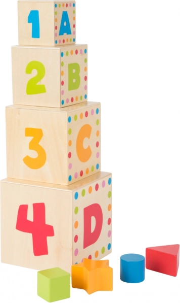 Die Holz-Steckwürfel ABC small foot sind das ideale didaktische Spielzeug für erste Lernerfahrungen. Kinder setzen die passenden Formen in die entsprechenden Öffnungen, stapeln die Würfel aufeinander und lernen anhand der Aufdrucke Buchstaben und Zahlen kennen. Spielerisch trainieren sie Form- und Farberkennung, Zählen sowie das Alphabet.