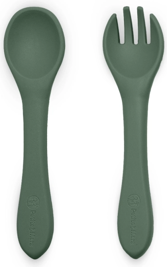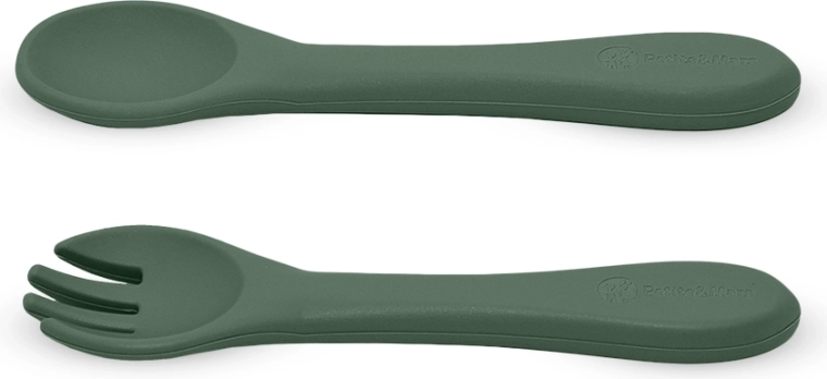 Das Silikon-Besteckset PETITE & MARS Take & Match in Misty Green erleichtert jede Mahlzeit. Kurze, robuste Griffe passen in kleine Händchen und die weichen Enden sind sanft zum empfindlichen Zahnfleisch. Dank BPA-freiem, lebensmittelechtem Silikon ist das Besteck sicher für den täglichen Einsatz – von den ersten Beikostmahlzeiten bis zum selbstständigen Essen.