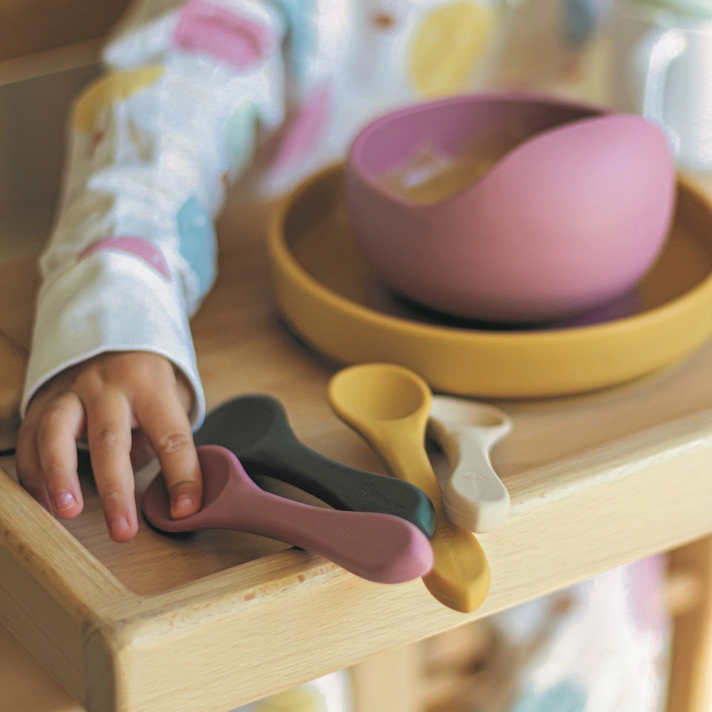 Kurz und abgerundet – die Griffe erleichtern das Greifen und die Bewegungskontrolle – ideal für die ersten selbstständigen Mahlzeiten ohne unnötige Missgeschicke.