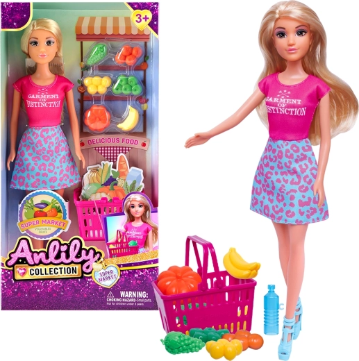 Diese bezaubernde Puppe im schönen Outfit ist bereit für den Einkauf am farbenfrohen Obst- und Gemüsestand. Kinder können Lebensmittel einkaufen, sortieren und im geräumigen Korb transportieren und lernen dabei ganz natürlich die Grundprinzipien einer gesunden Ernährung kennen.