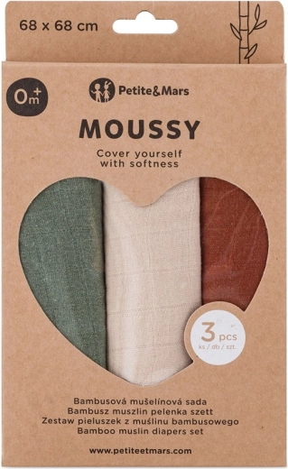 Die Bambus-Baumwoll-Musselintücher Moussy sind ein unverzichtbarer Bestandteil der täglichen Babypflege. Dank der Kombination aus 70 % Bambus und 30 % Baumwolle überzeugen sie durch Weichheit, Leichtigkeit und hohe Saugfähigkeit. Sie sind von Geburt an sicher, frei von schädlichen Stoffen und auch für sehr empfindliche Haut geeignet.