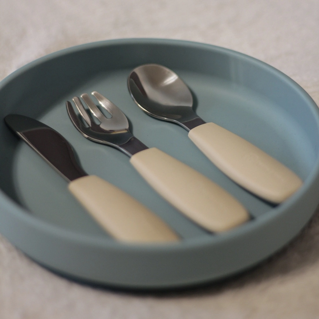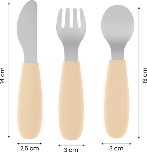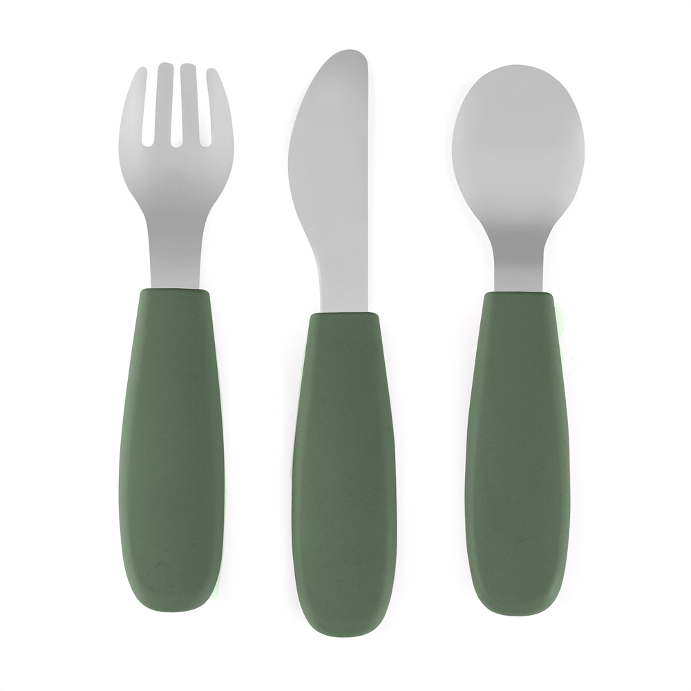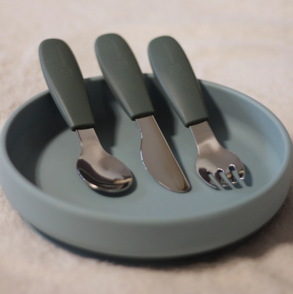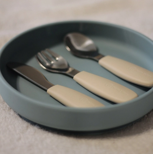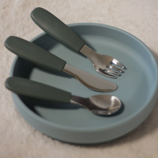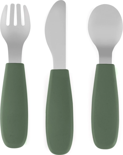 Das PETITE&MARS Besteckset Take&Match Misty Green ist für kleine Kinderhände gestaltet und begleitet die ersten sicheren Schritte zum eigenständigen Essen. Die funktionalen Teile aus hochwertigem Edelstahl sind robust und hygienisch, während weiche Silikongriffe einen sicheren, rutschfesten Griff bieten. Sanft abgerundete Kanten erhöhen die Sicherheit bei jedem Bissen.