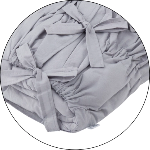 Das Schnür-Wickeltuch in der Farbe Light Grey ist seit Generationen eine beliebte Hilfe für Eltern. Es eignet sich hervorragend für Kinderbett, Kinderwagen und zum Stillen. Die universelle Größe 75 × 75 cm passt ab der Geburt und bietet dank der herausnehmbaren Kokos-Verstärkung Halt und Stabilität für den kleinen Körper. Vor dem Waschen kann die Einlage einfach entnommen werden.
