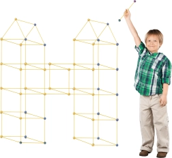 Entdecken Sie das Zauber der kreativen Bauten mit unserem auergewhnlichen Bauset, das Kindern ermglicht, eine Vielzahl von Strukturen wie Zelte, Basen oder sogar Hundehuser zu bauen! Das Set entht 75 Teile, darunter 51 gelbe Stange und 24 verschiedenfarbige Verbindungskugeln, die endlose Baumglichkeiten bieten.
