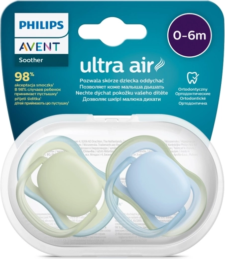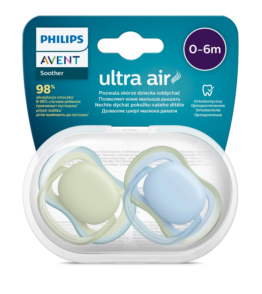 Philips Avent Ultra Air ist für sanfte Beruhigung und eine gesündere Babyhaut konzipiert. Extra große Öffnungen im Schild sorgen für eine verbesserte Luftzirkulation, wodurch die Haut um den Mund trockener und weniger gereizt bleibt. Das leichte Design und der ergonomische Ring erleichtern Handhabung und Befestigung.