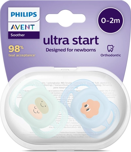 Der Philips Avent Ultrastart Schnuller wurde speziell für die Allerkleinsten entwickelt. Die ultraleichte Form mit kleinem Schild respektiert die zarte Haut und die Proportionen von Neugeborenen zwischen 0–2 Monaten. Der weiche Sauger aus Silikon in Lebensmittelqualität unterstützt ein natürliches Saugen und ist angenehm zum Zahnfleisch. Lüftungsöffnungen im Schild verbessern die Luftzirkulation und reduzieren das Risiko von Hautreizungen.