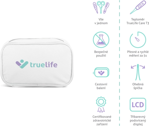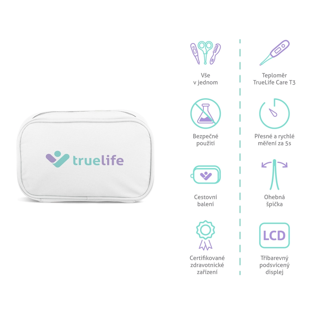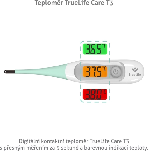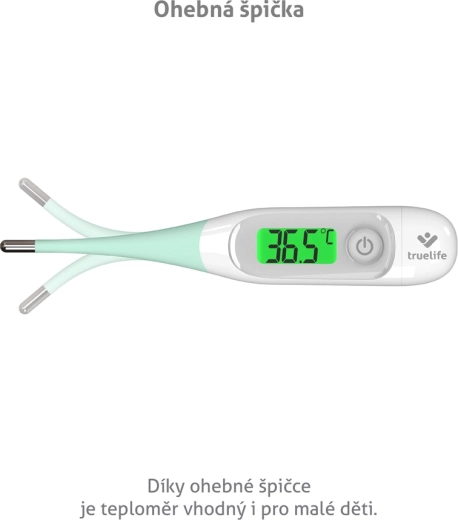 TrueLife Care T3 misst die Temperatur in 5–10 s, verfügt über eine 3-farbige Hintergrundbeleuchtung zur schnellen Einschätzung, eine flexible Spitze und einen Speicher für die letzten 10 Messungen. Misst auch die Temperatur des Wasserbads.