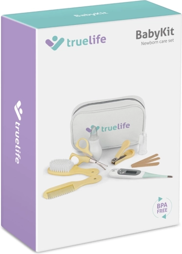Das TRUELIFE BabyKit ist ein durchdachtes Set, das die täglichen Bedürfnisse Ihres Babys von den ersten Tagen an abdeckt. Das digitale Thermometer TrueLife Care T3 misst die Temperatur bereits in 5–10 Sekunden, besitzt ein 3-farbig hintergrundbeleuchtetes Display für schnelle Orientierung und eine flexible Spitze, die sanft zur empfindlichen Haut ist. Der Nasensauger hilft, die Atemwege zu befreien, während Schere und Knipser mit sicher abgerundeten Spitzen die Nagelpflege erleichtern. Die weiche Bürste und der Kamm sind ideal für die ersten Haare.