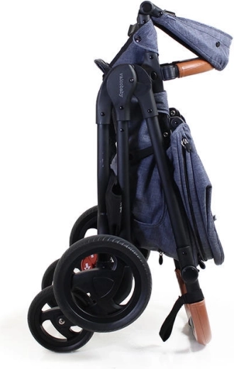 Der Kinderwagen lässt sich auf platzsparende Maße zusammenklappen – ideal fürs Auto und die Wohnung. Er steht auch im zusammengeklappten Zustand stabil.