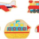 Holzpuzzle – Fahrzeuge. Die deutsche Firma Legler ist seit 1996 auf die Herstellung hochwertiger Holzspielwaren spezialisiert. Alle Holzspielzeuge der Marke small foot tragen die CE-Kennzeichnung und werden nach der europäischen Spielzeugnorm EN 71 gefertigt. Die verwendeten Farben sind speziell für Holzspielzeuge entwickelt und sogar speichelfest. Das für diese Spielzeuge verwendete Holz stammt überwiegend von Forstbetrieben, die sich an Wiederaufforstungsprogrammen beteiligen. So erhalten alle Kunden die Möglichkeit, zum Erhalt natürlich wachsender Wälder beizutragen. Die Holzspielzeuge von small foot sind farbenfrohe Produkte, die überwiegend aus natürlichen Rohstoffen – Holz – hergestellt werden. Sie bereiten Kindern schon im frühen Alter Freude und fördern ihre taktilen und sensorischen Fähigkeiten. Ziel der Marke small foot ist es, die geistige und körperliche Entwicklung von Kindern zu unterstützen.