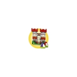 Die große gelbe Box im LEGO-Stein-Look hält alle Teile zusammen. Sie lässt sich leicht transportieren und hilft, nach jedem Spiel Ordnung zu halten.