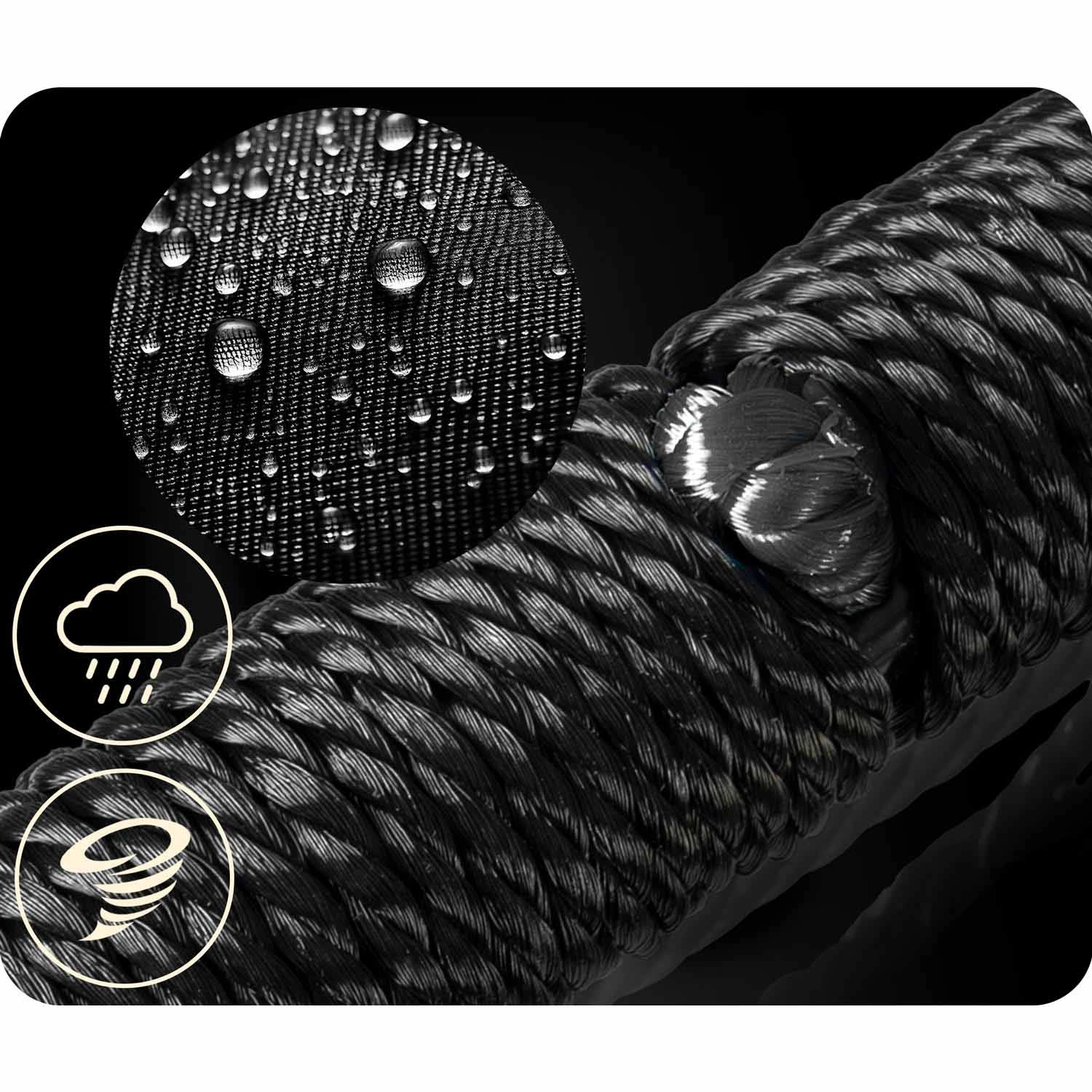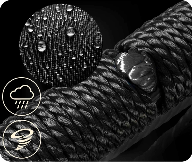 Der Stahlrahmen mit PE-Ummantelung und das eng geflochtene Netzwerk im Stil eines „Spinnennetzes“ sorgen für Stabilität, Komfort und Langlebigkeit auch bei häufiger Nutzung.